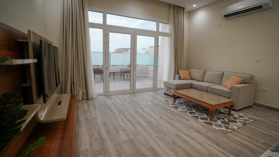 The rest house has all the needs a family would need, as it consists of five master rooms and two other rooms for the maid and the driver. It also has an outdoor kitchen, laundry, outdoor swimming pool, men's sitting area, and a living room on the first and second floors.