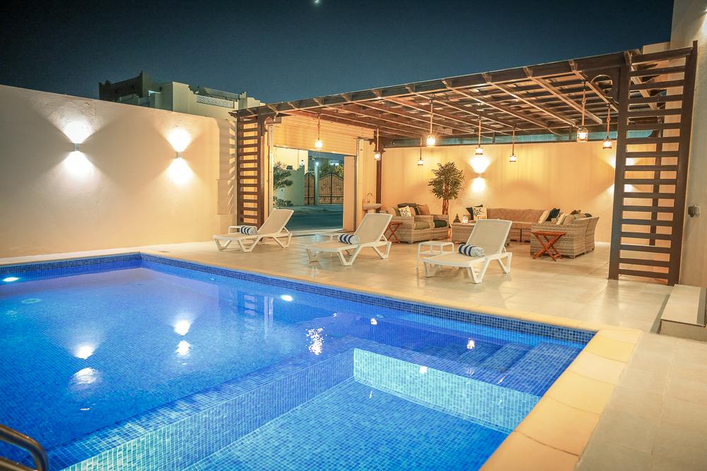 The villa consists of 2 levels, 5 bedrooms and 5 bathrooms with 2 king beds and 7 single bed with sea view ,1 dinning room with kitchen, also it includes swimming pool and an outdoor sitting area.