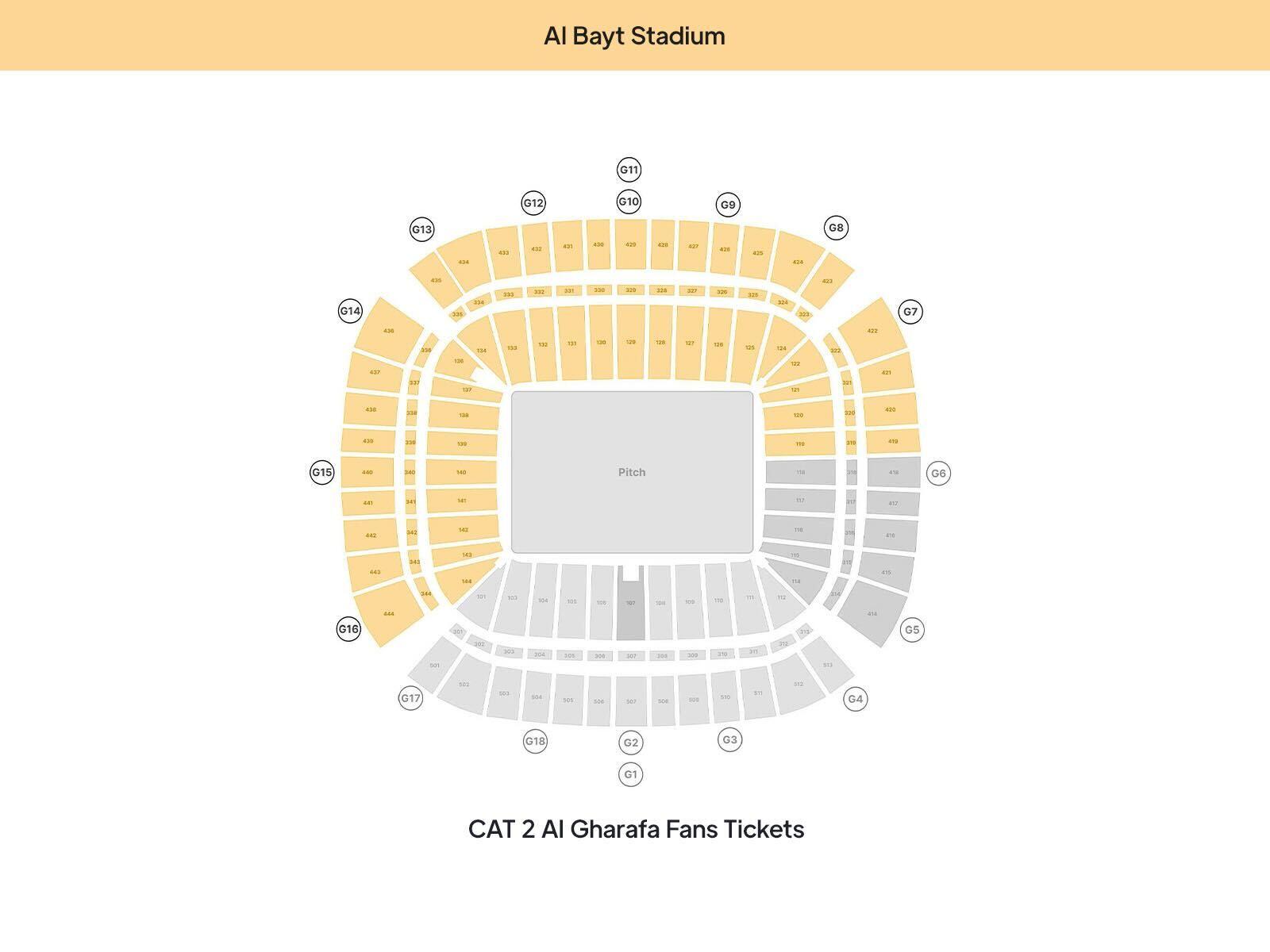 AL GHARAFA SC vs AL AIN FC Football Match in the AFC Champions League group stage on October 1st 2024 at 9PM in Al Bayt Stadium, Al Khor. This category of Tickets is only for Al Garafa Fans. Gates to this ticket category are G7, G8 , G9 , G10 , G11 , G12 and G13